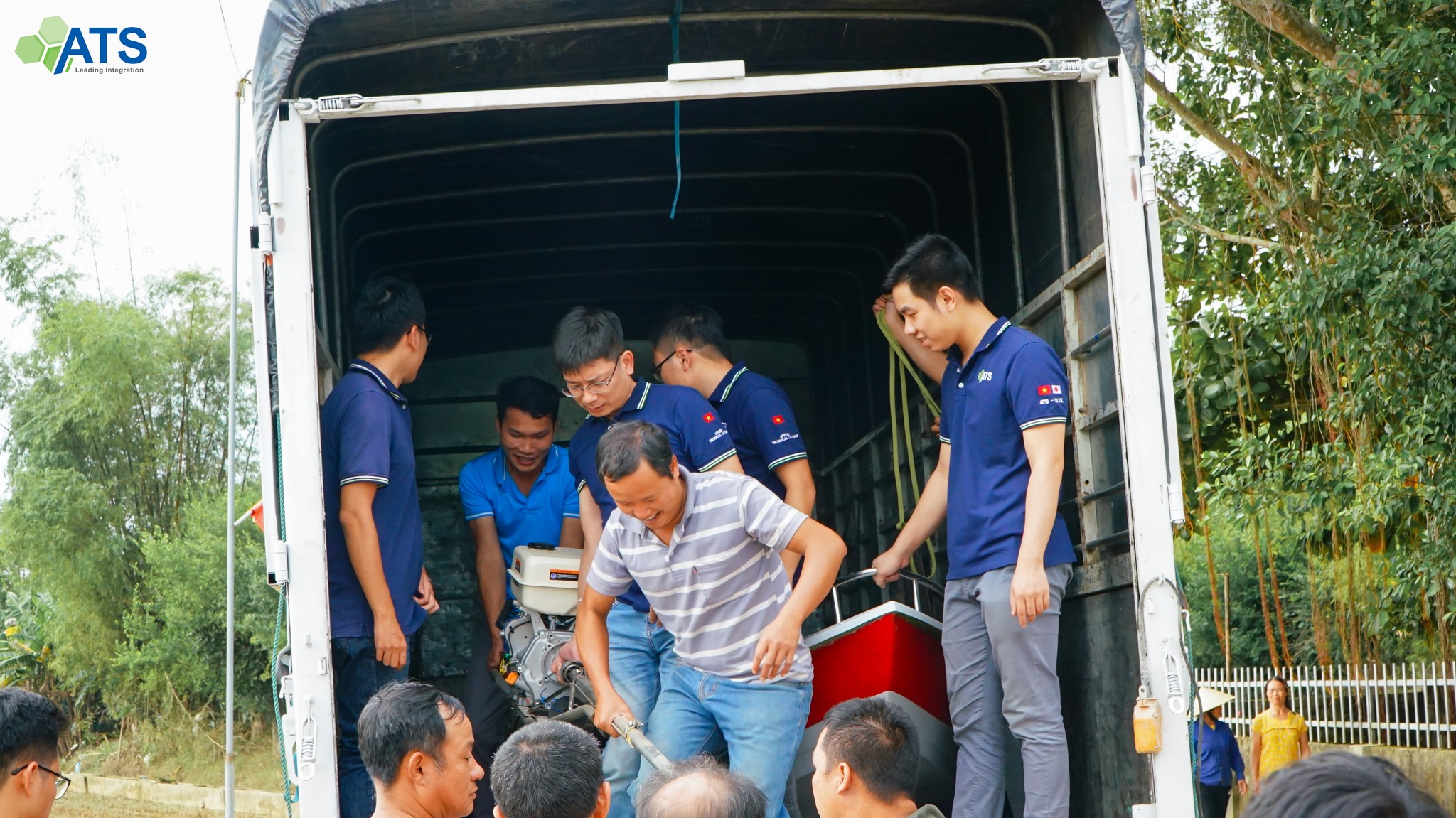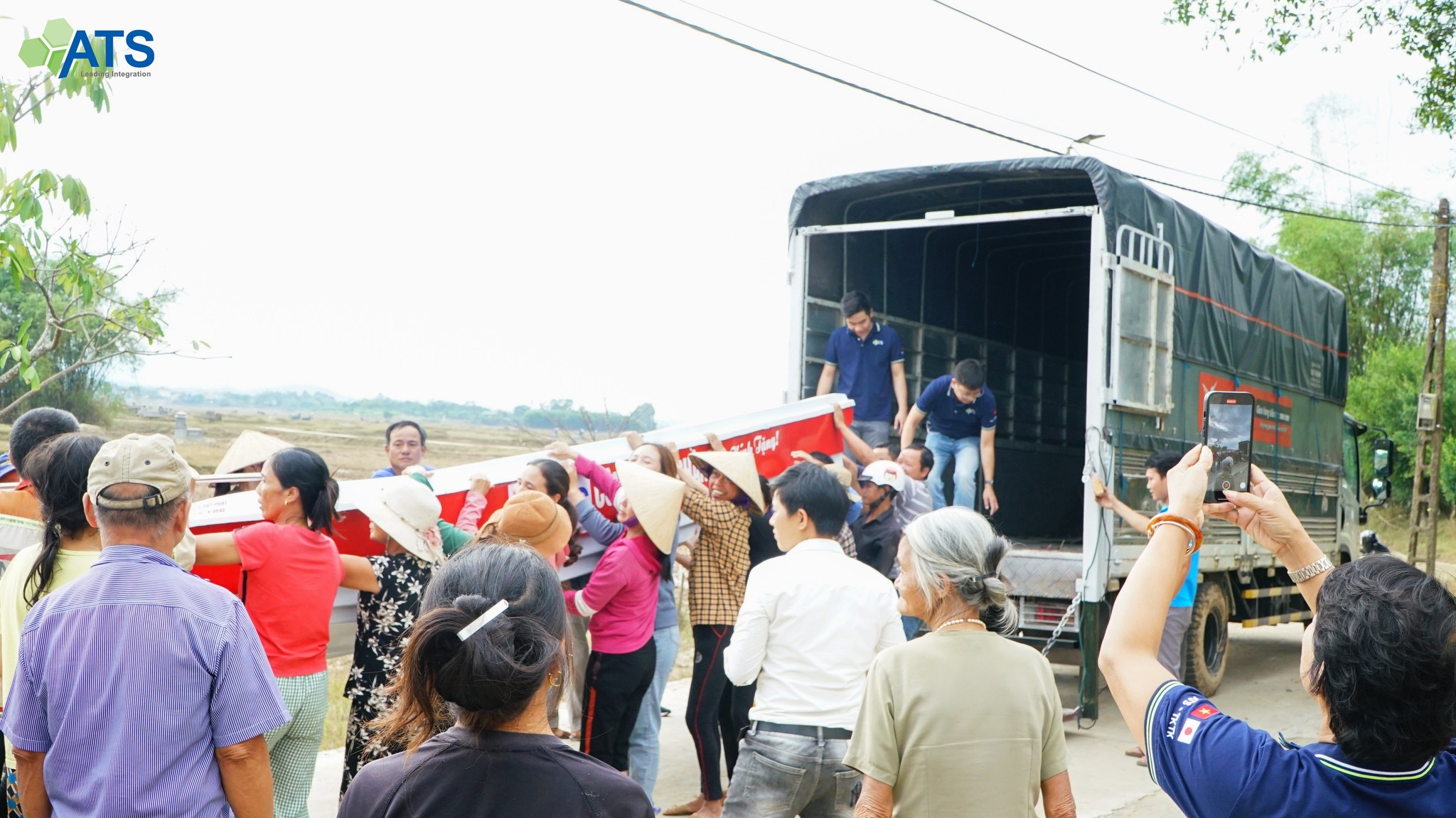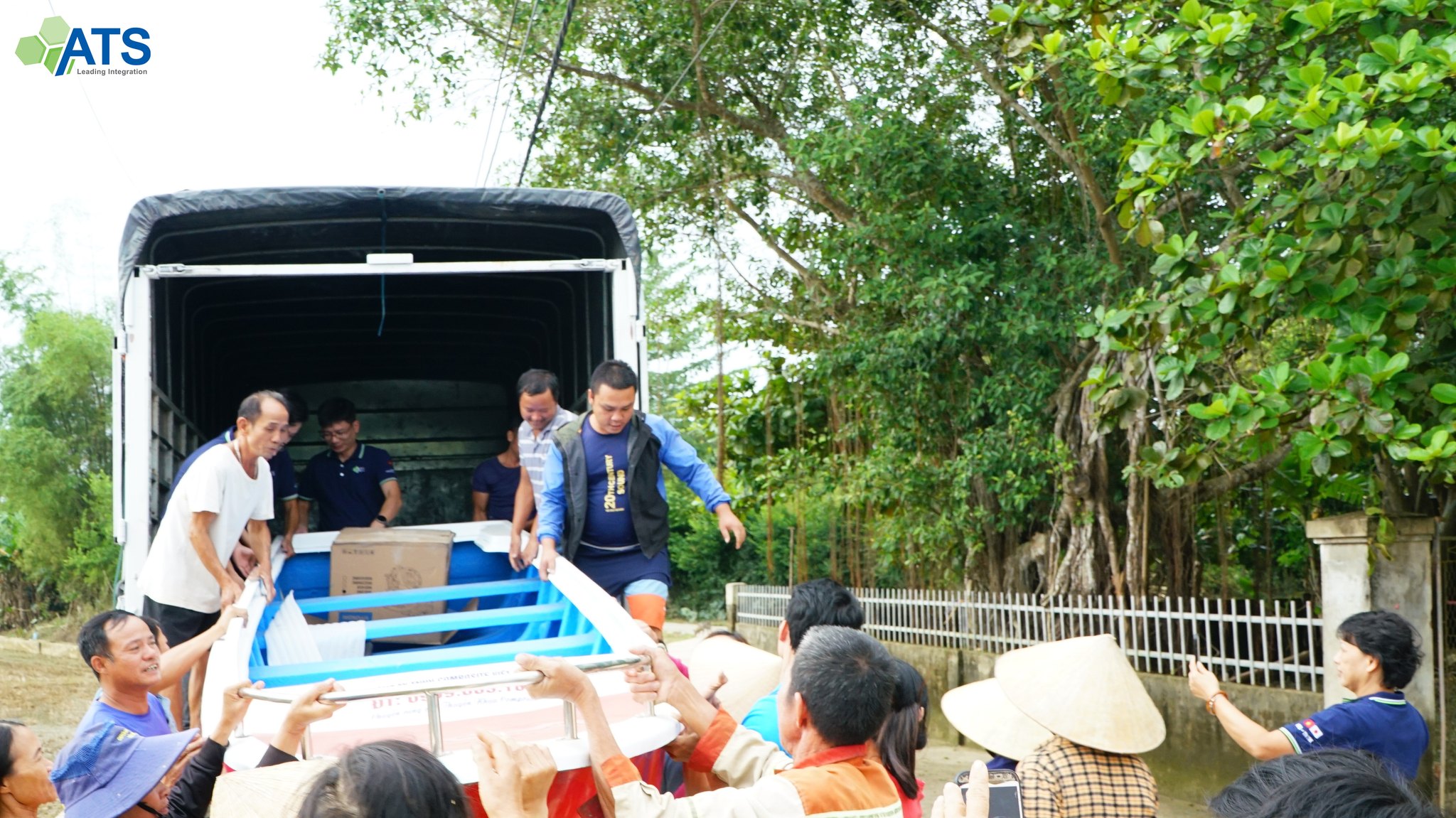 Đồng cảm cùng người dân vùng lũ và mong muốn được chung tay giúp sức cộng đồng, ngày 11/10 vừa qua, các thành viên ATS đã có mặt tại vùng rốn lũ Thanh Chương, Nghệ An để tiếp tục hành trình chia sẻ yêu thương của mình. Với đóng góp từ phía công ty cũng như các thành viên, đoàn tình nguyện của ATS đã trao tặng hơn 100 suất quà gồm thuốc và tiền mặt tới những gia đình khó khăn hỗ trợ quá trình khắc phục hậu quả bão lũ. Nhìn những nụ cười, những gương mặt hân hoan của người dân địa phương khi nhận chiếc thuyền, những lời cảm ơn, cái vẫy chào tạm biệt, niềm vui khi được sẻ chia yêu thương ngập tràn trong trái tim các thành viên ATS.