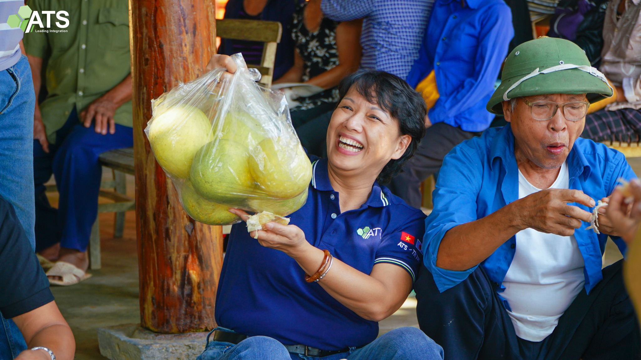 Những phần hoa trái hiếm hoi còn sót lại sau mùa lũ, các cô bác Xóm Phú Lập đã hào phóng chia sẻ cùng thành viên ATS.