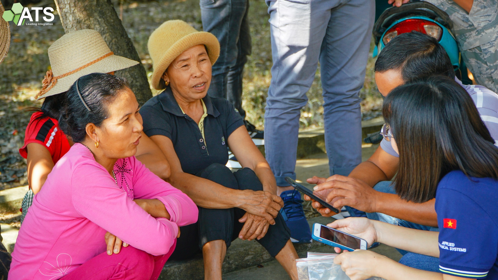 Thành viên ATS chia sẻ và lắng nghe câu chuyện vượt bão của người dân địa phương