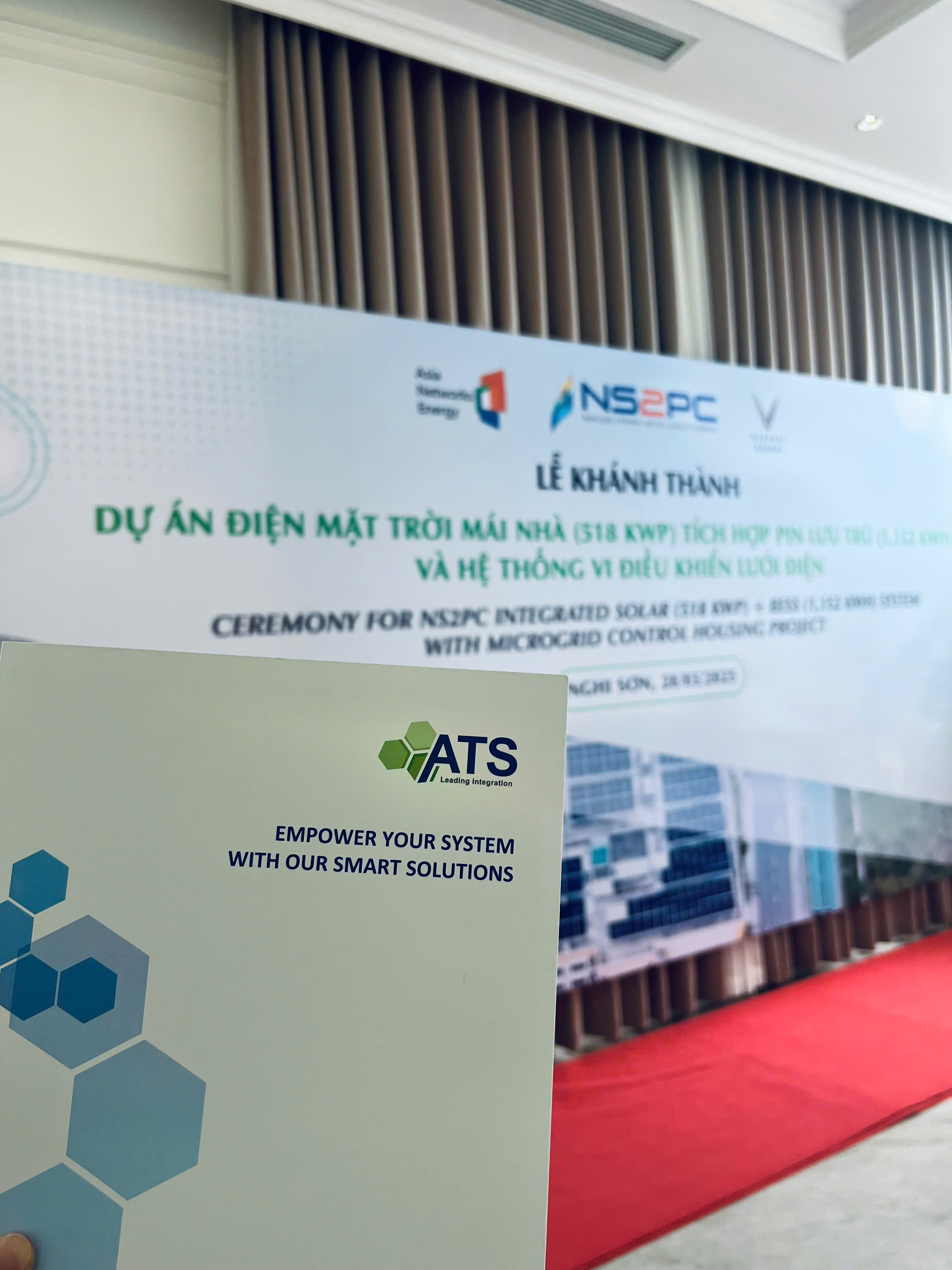 Ngày 28/3/2025 vừa qua, dự án Điện mặt trời áp mái (công suất 518 kWp) tích hợp Pin lưu trữ năng lượng BESS (1.152 kWh) và Hệ thống vi điều khiển lưới điện Microgrid với chủ đầu tư là  Công ty TNHH Điện Nghi Sơn 2 (NS2PC) đã được khánh thành.