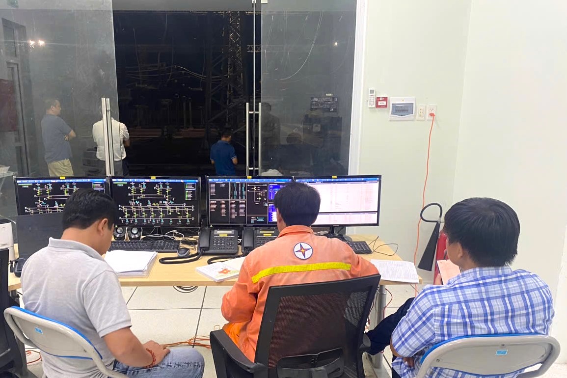 Các đơn vị phối hợp nghiệm thu đóng điện công trình đêm 26/11