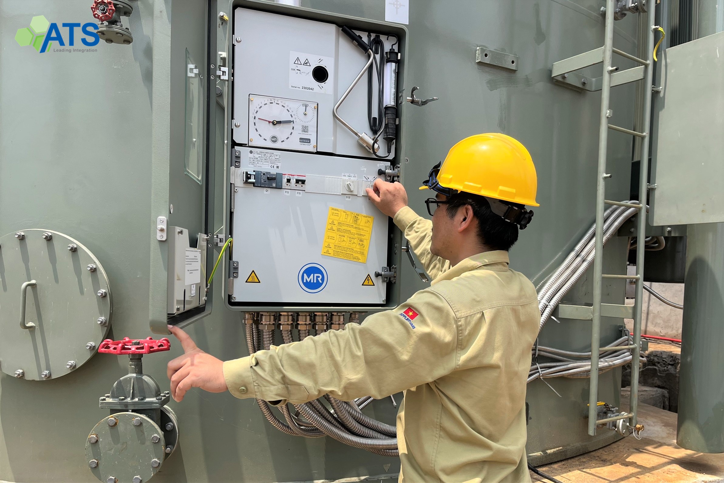 Kỹ sư ATS thực hiện thử nghiệm trên máy biến áp mới tại trạm
